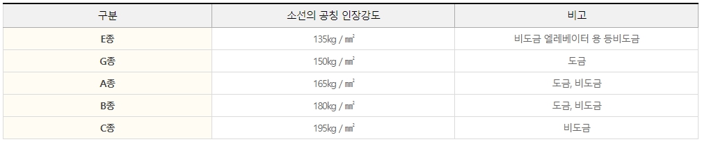 – 로프의 절단하중은 동일경, 동일구조에서 소선의 인장강도 종별에 따라 구분된다.